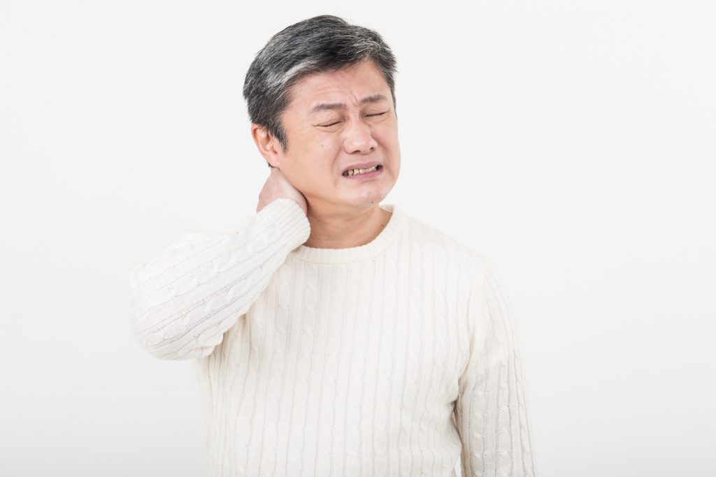 加齢により頸椎(首の骨)が変形し、神経が圧迫されて痛みが出ます。特に、50代以上の人に多く、骨の老化によって椎間板がすり減り、首の可動域が狭くなります。
